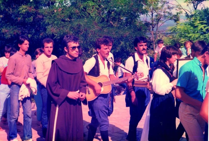 Continue ReadingGrupa Milećana i Međugorčana u Širokom Brijegu. Slijeva Vinko Dragićević, fra Slavko Barbarić i Rajko Elez Ćopa s gitarom